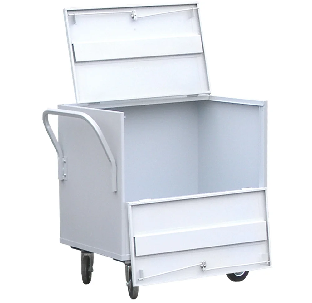 - Две закрываемые на замок двери (сверху и сбоку тележки).