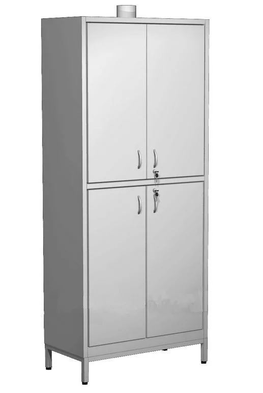 Шкаф изготовлен из стали, толщина корпуса 0,6мм, толщина двери 0,7мм комплектуются ключевыми замками, (замок устанавливается на верхнюю и на нижнюю дверь) . Ручка пластиковая *125