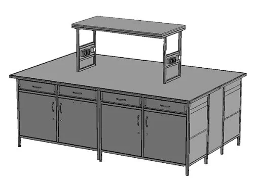Каркас металлический (цельносварной), изготовлен из стального тонкостенного профиля профиля 25*25 мм. Ящики полного выдвижения на роликовых направляющих, с защитой от случайного выпадения - (2 шт). Стол имеет распашные двери на тумбах (2 шт) с одной полкой внутри. Для регулировки неровности пола предусмотрены ножки бинго - 4 шт. Столешница (сборная) керамогранит на подложке из ЛДСП16, с окантовкой из металлического профиля (серый)
