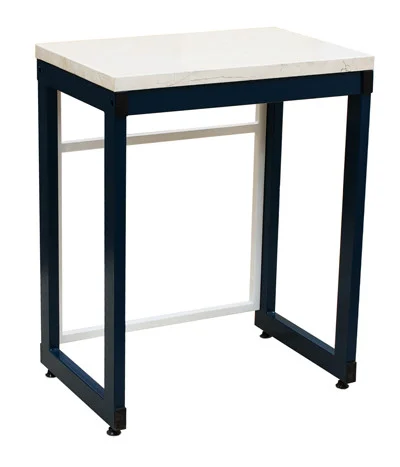 Каркас изготовлен из стального тонкостенного профиля профиля 40*20 мм ,20*20 мм , покрытого экологически чистой полимерно порошковой краской, цвет по RAL9005 текстурный. Столы установлены на регулируемые опоры, для компенсации неровностей пола. Столешница устанавливается на резиновые накладки. Допустимая нагрузка на рабочую поверхность - 150 кг. Цельносварная.