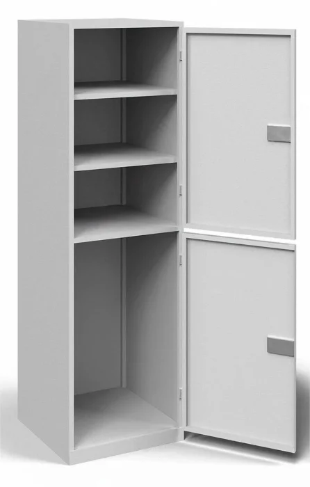 - Шкаф двухдерный с замком - накладной БИФ. Внутри шкафа установлены 2 полки.