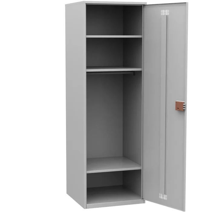 - Шкаф для хранения специальных средств и бронезащиты имеет 1 отделение с 3мя полками и перекладиной для вешалки.