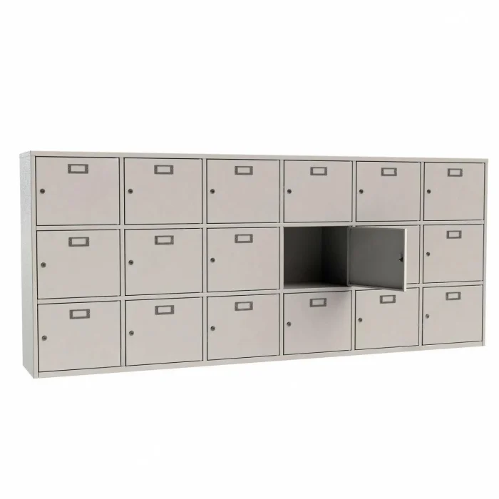 - 18 ячеек для касок. Каждая ячейка оснащена почтовым замком с двумя ключами в комплекте.