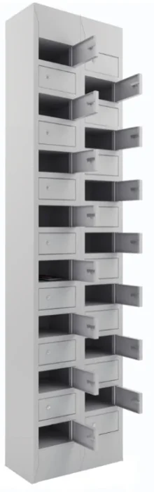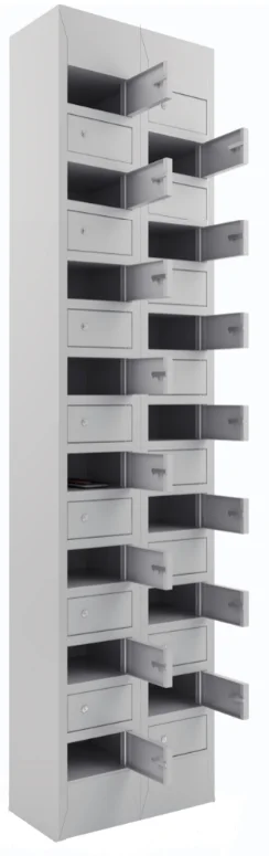 Шкаф для хранения мобильных телефонов на 30 ячеек, напольный. Отличный вариант для установки в различных административных и образовательных учреждениях. Все ячейки индивидуальные и закрываются на замок, дверца - р/р 155х74Н