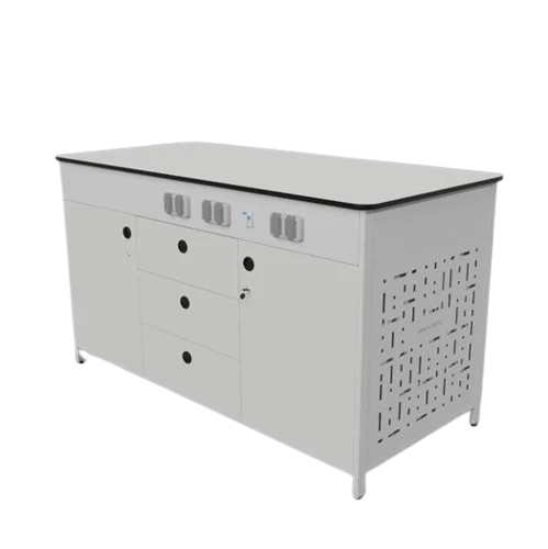 Стол лабораторный демонстрационный, имеются: розетки 220Вт - 3 шт., автоматического выключатель дифференциального тока УЗО 16А - 1 шт. Материал столешницы: постформинг 25 мм (устойчива к различным воздействиям: нагрев, кислоты, растворители и пр.). Состоит из прочного металлического каркаса, из стальных прямоугольных труб, задняя и боковая часть стола закрыта панелями из листовой стали, с полимерным покрытием серого цвета. В каркасе лабораторного стола предусмотрены регулируемые опоры в диапазоне 0-20 мм для компенсации неровностей пола. Со встроенной тумбой из ЛДСП 16 мм., с 3-я выдвижными ящиками и двумя распашными дверями.