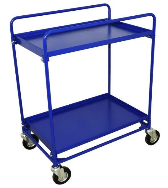 Сервисная тележка — незаменимое оборудование, для перемещения средств уборки, сухого белья, предметов интерьера и т. д. Грузоподъемность тележки рассчитывается из расчета 50 кг. распределенной нагрузки на полку. На тележку устанавливаются промышленные поворотные колесные опоры D125 мм. с резьбовой шпилькой М12. Базовая комплектация тележки состоит: - две ручки - основание - две полки с бортиком (высота бортика 30 мм) - комплект кронштейнов и метизов для установки полок. Высота тележки без колёс составляет 850мм.